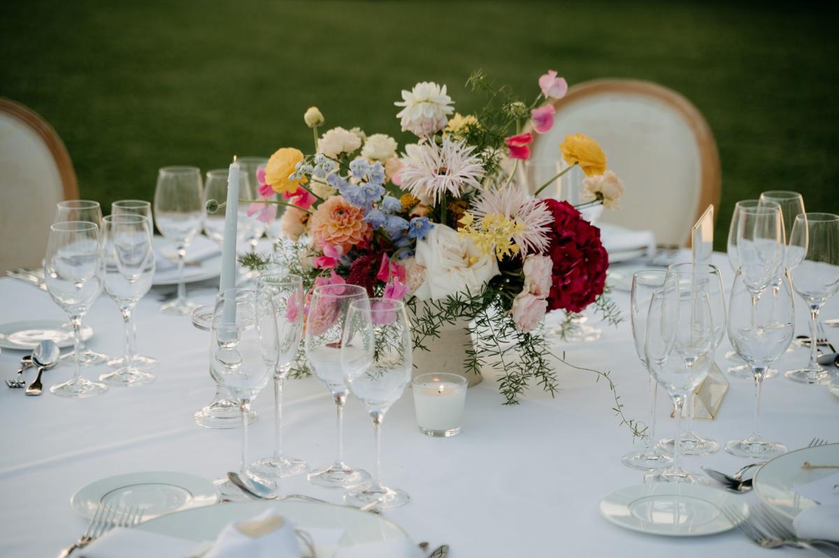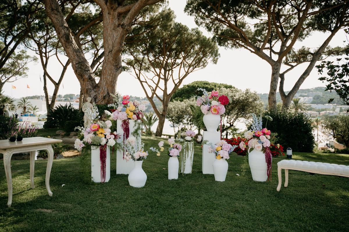 La decoración llena de color y elegancia aportó frescura y sofisticación al espacio, destacando aún más la belleza natural del entorno. Una combinación de flores de colores, fueron las elegidas para la decoración de toda la boda. El jardín fue el escenario perfecto para la ceremonia, con el sonido del mar de fondo y una atmósfera llena de magia. Para el banquete, unas vistas espectaculares al mar.