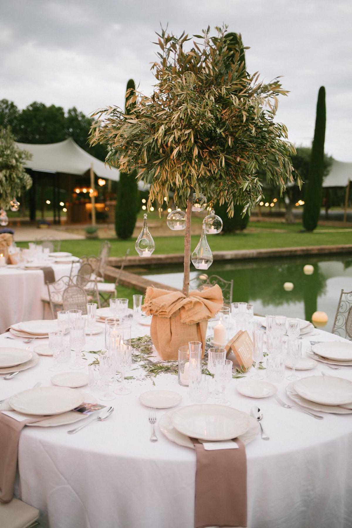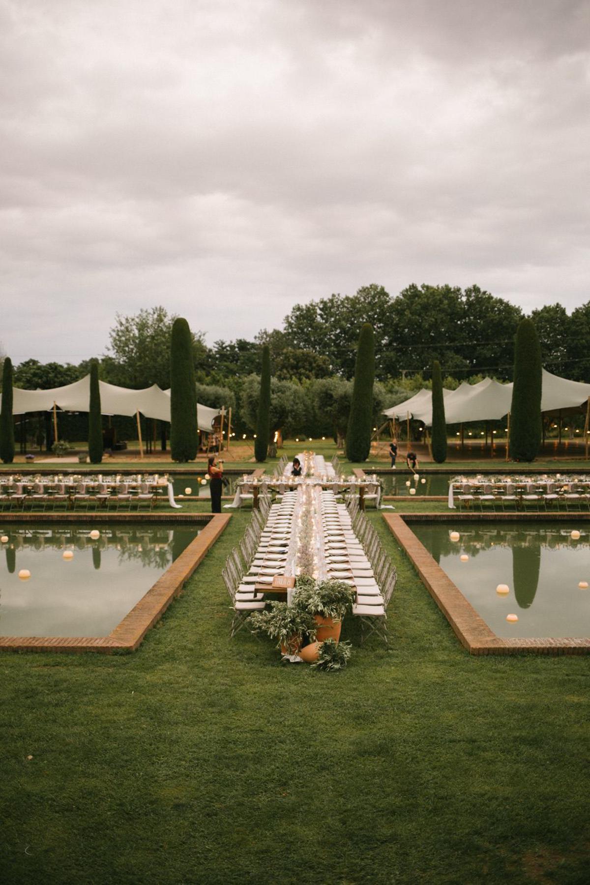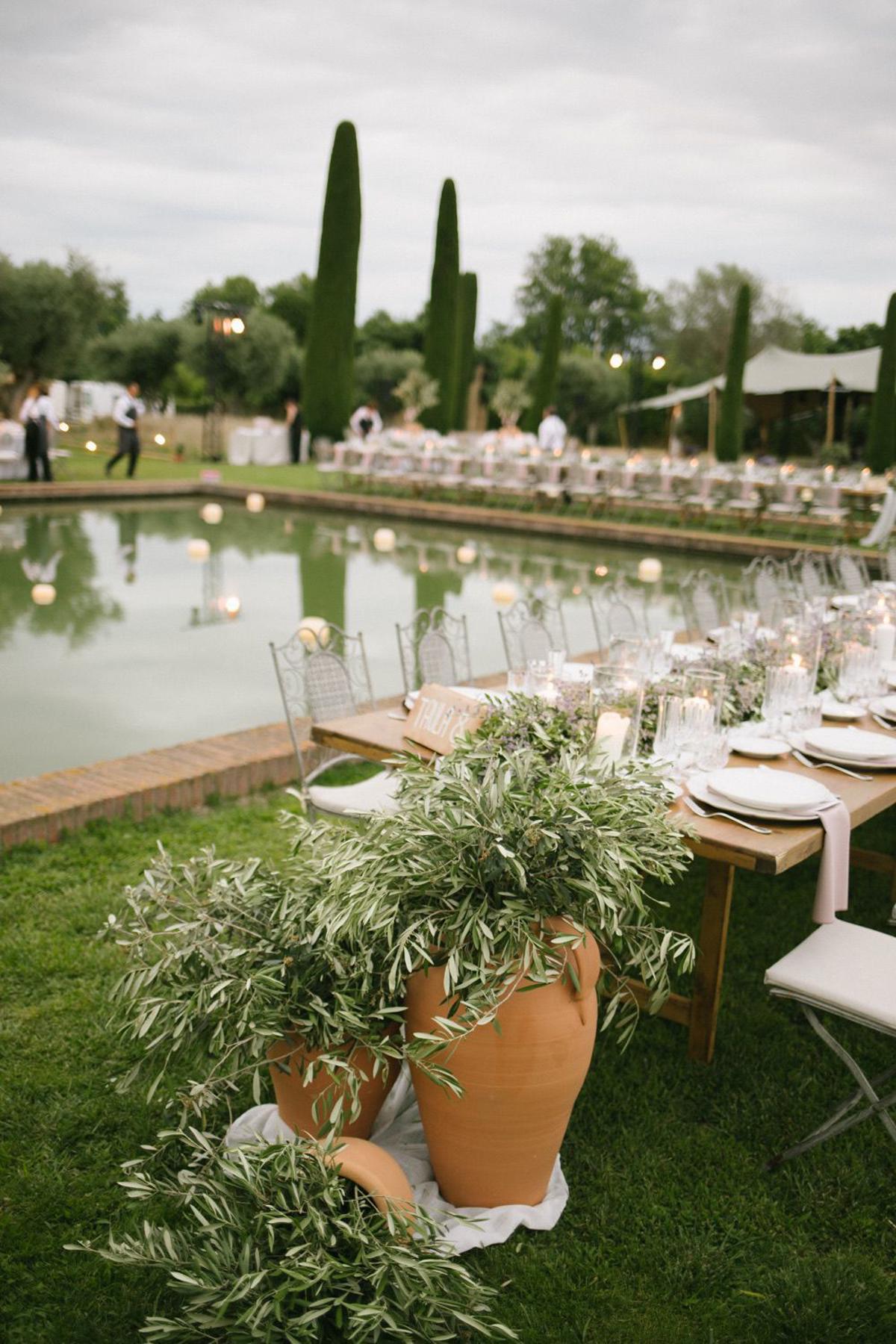 La celebración se llevó a cabo en los impresionantes jardines diseñados por Fernando Caruncho, un espacio único que aportó una belleza natural inigualable al entorno. La decoración giró en torno a los olivos, espigas y lavanda, que complementaron a la perfección la esencia del paisaje. Además, miles de velas fueron distribuidas por todo el lugar, iluminando suavemente cada rincón y creando una atmósfera mágica y romántica.