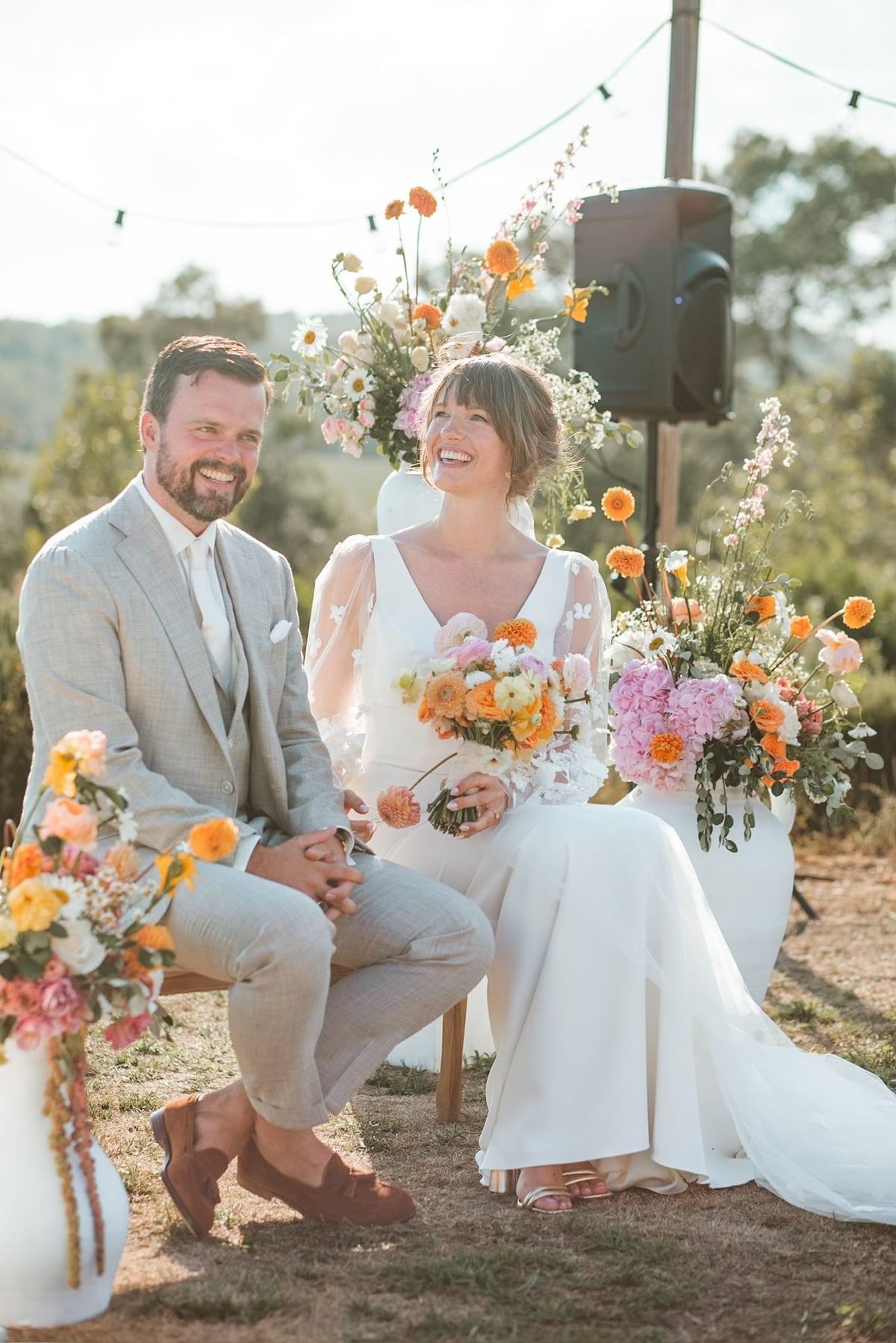 Desde el primer momento, tuvieron claro que querían una boda con un estilo natural y colorido, donde las flores fueran las protagonistas. Así que diseñamos un pasillo único, donde las flores parecían nacer del suelo, creando un camino vibrante y lleno de vida hasta el altar.