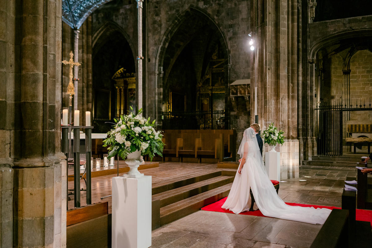 C&P vivieron un día de cuento, comenzando con una emotiva ceremonia en la impresionante Catedral de Girona, un escenario majestuoso para su gran "sí, quiero".