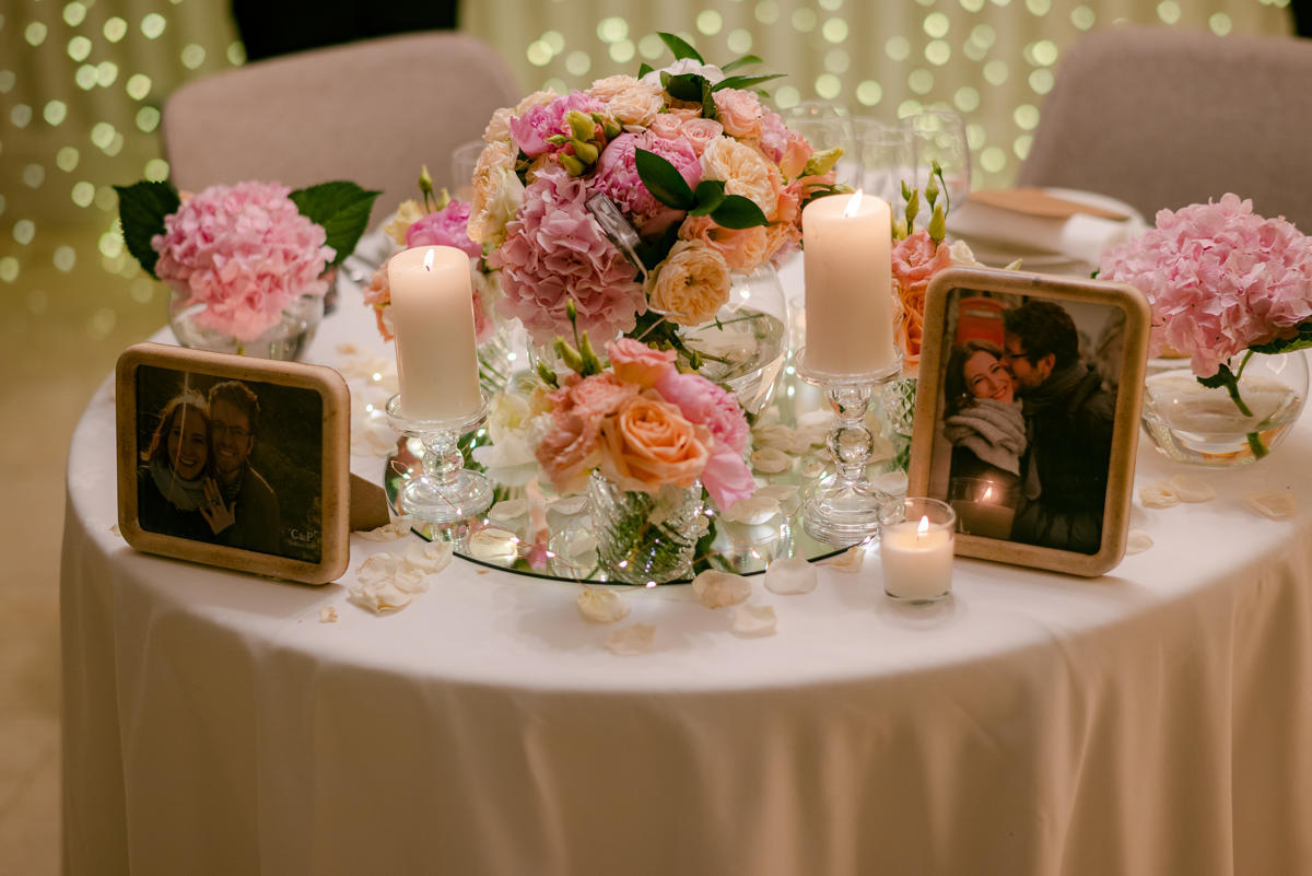 El banquete tuvo lugar en el Hotel S'Agaró, con decoración en tonos pastel y velas, creó un ambiente cálido y sofisticado.
