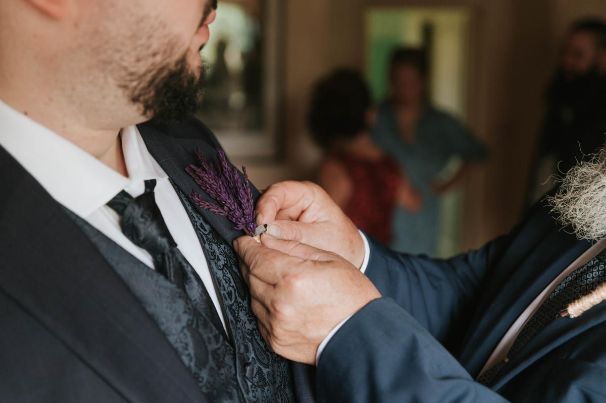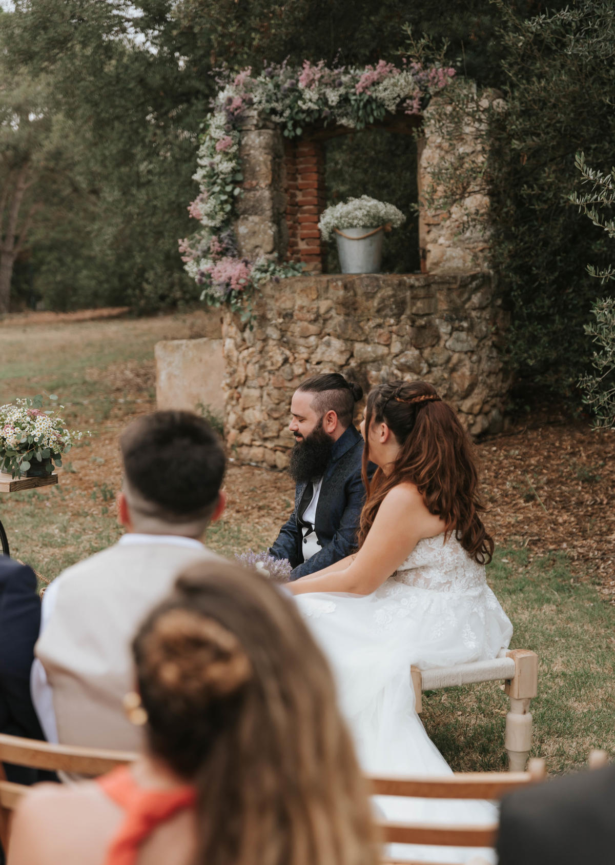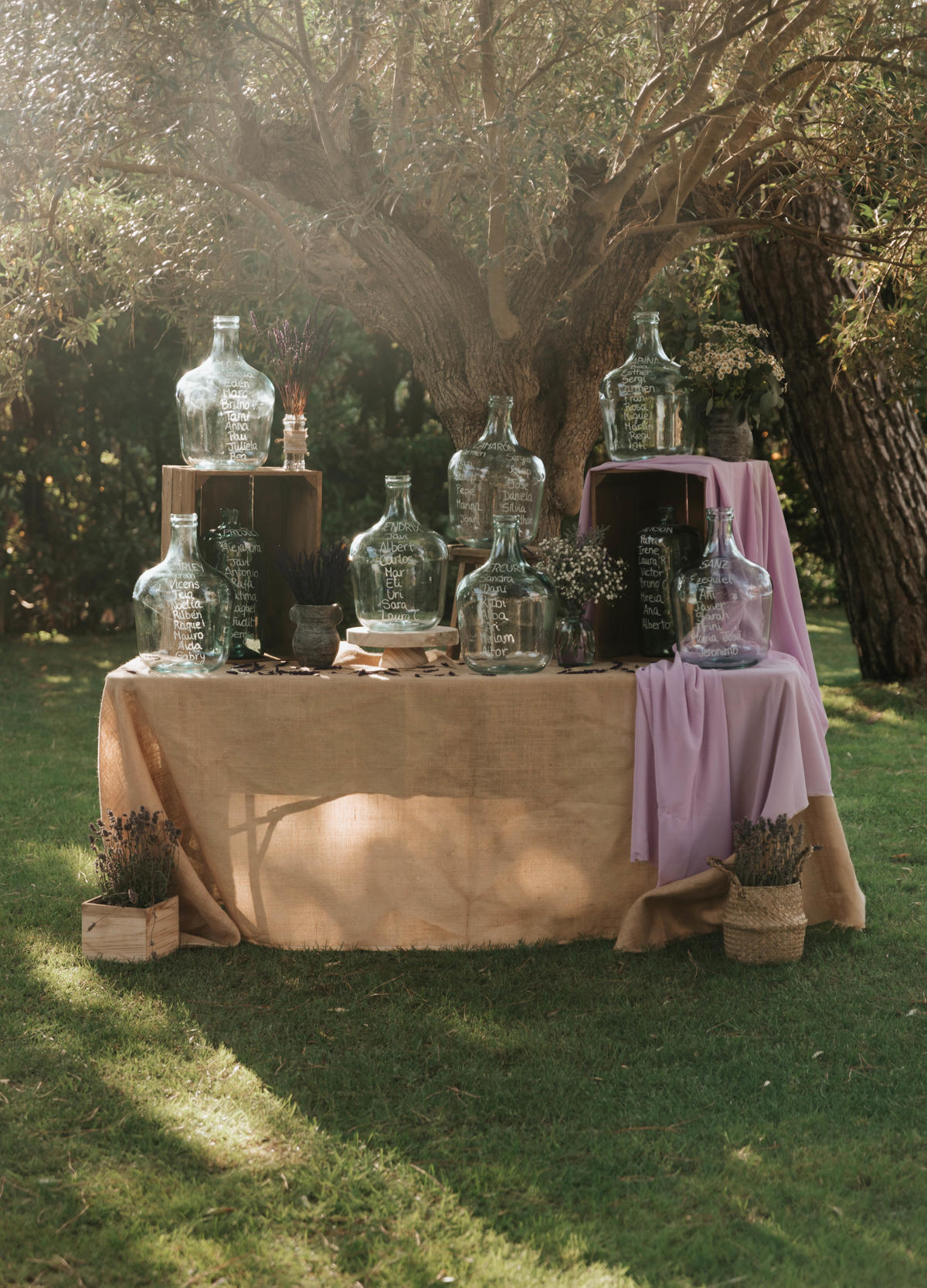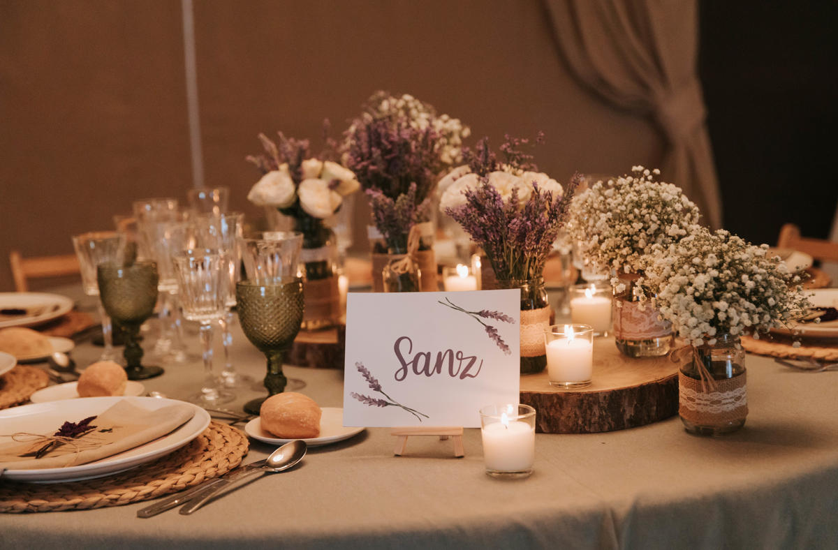 Sara y Javi celebraron su boda en Mas Darder. La lavanda fue la gran protagonista de la decoración, impregnando cada rincón con su color y su aroma inconfundible. Desde el camino hacia el altar hasta los centros de mesa, las flores aportaron un aire romántico y campestre a la celebración. La calidez del entorno, combinada con los detalles cuidadosamente seleccionados, creó una atmósfera mágica y acogedora, haciendo de esta boda un día verdaderamente inolvidable.