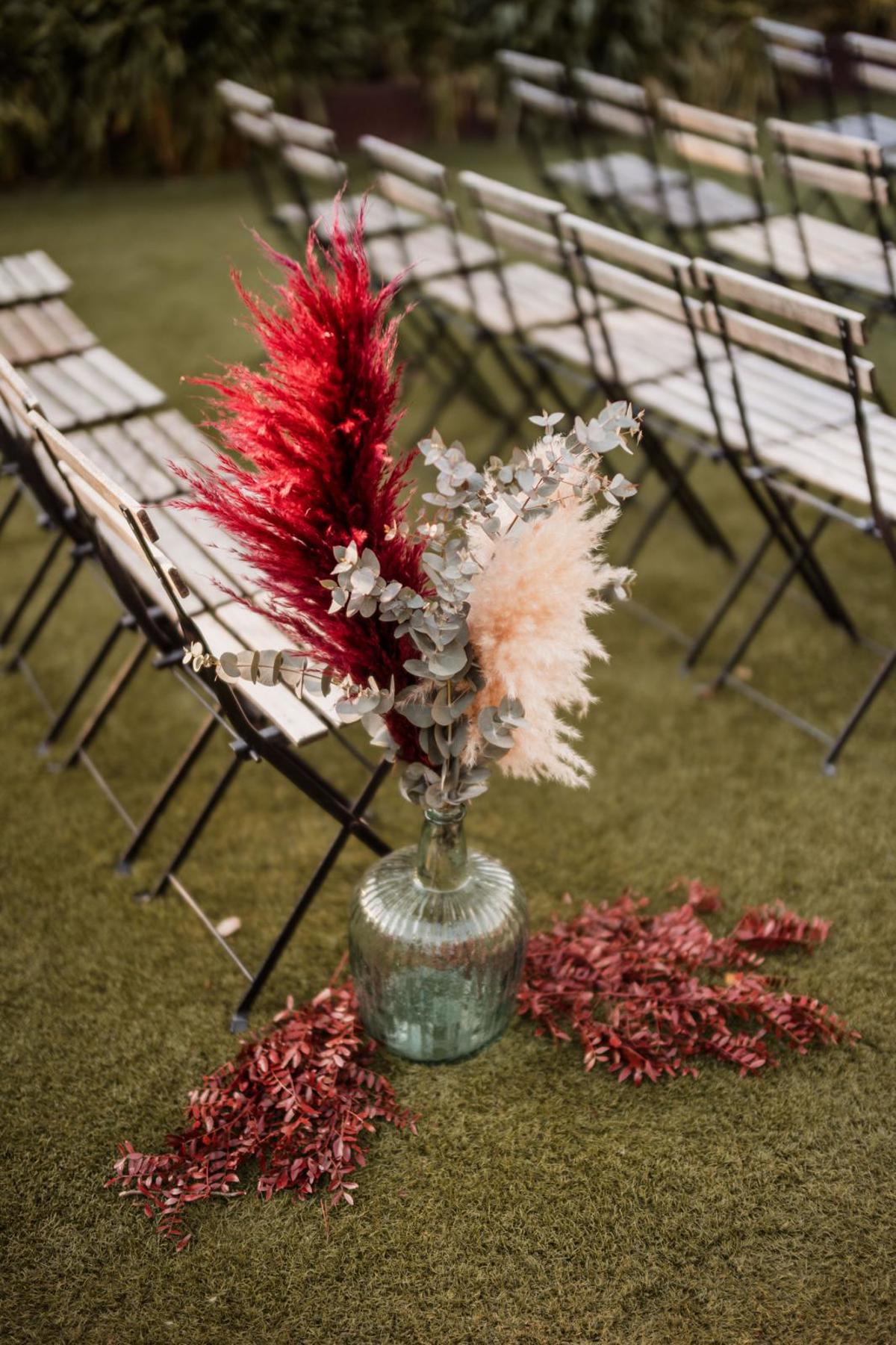 Son espectaculares. Te cogen rápidamente la idea de lo que quieres en tu día y lo realizan aún mejor. Elegí unos colores muy atrevidos y me daba un poco de miedo, pero ellas me apoyaron para hacerlo y la composición floral fue brutal. Todos los invitados me felicitaron.
